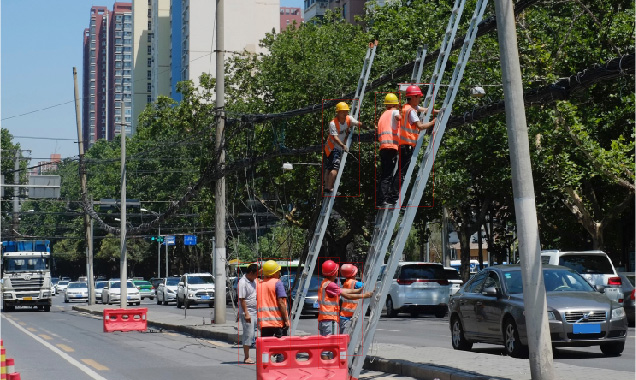 搭建起輸電線路AI智能分析平臺,檢測輸電線路巡檢常見的部件、缺陷和異物,桿塔倒伏識別,作業(yè)人員是否佩戴安全帽、穿戴工服,人員入侵、煙霧火焰等安全隱患,實時檢測故障自動識別、智能預(yù)警,有效提高巡檢的可靠性,效率提升50倍。